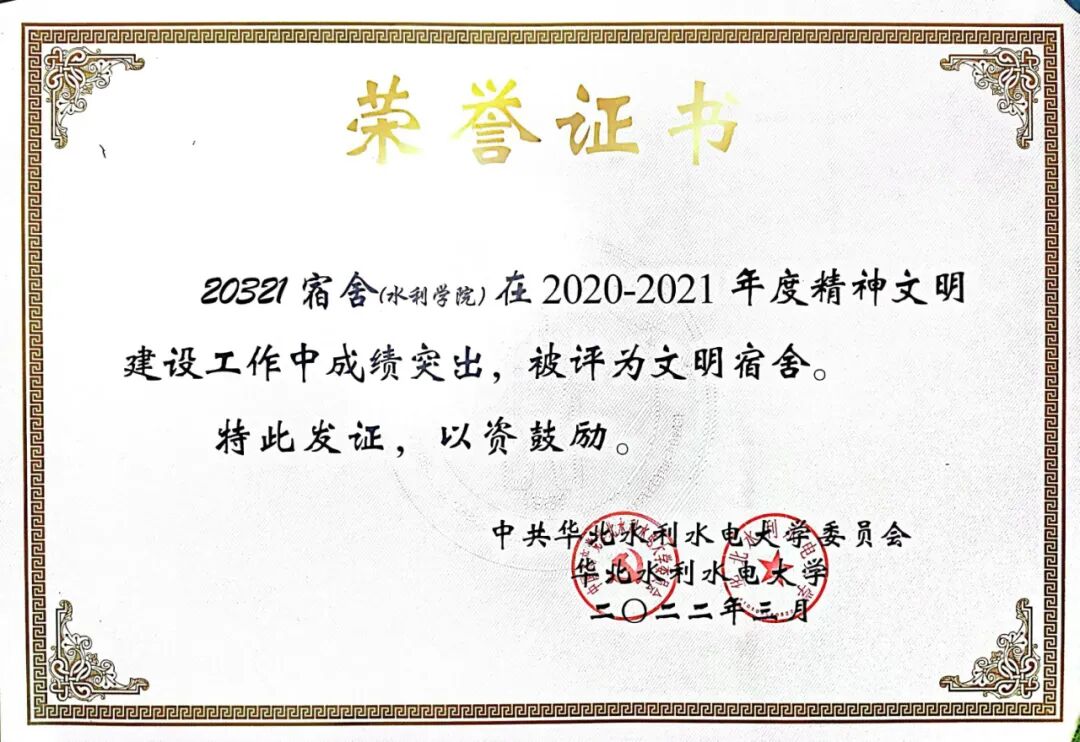 ✔ 华北水利水电大学三好学生
