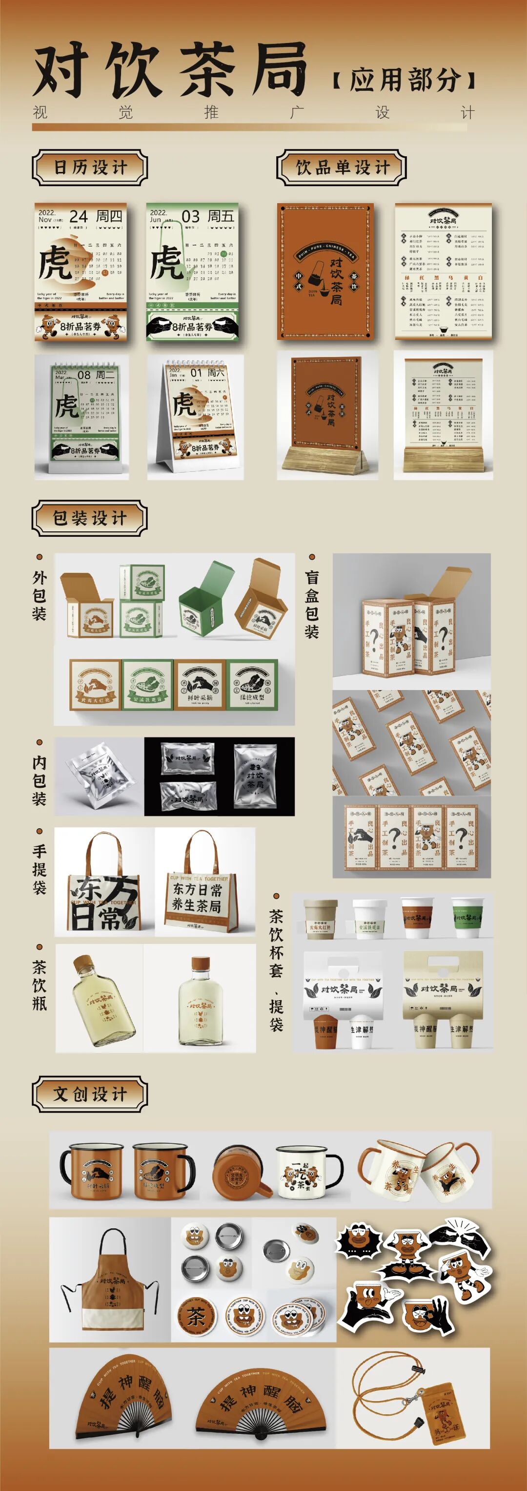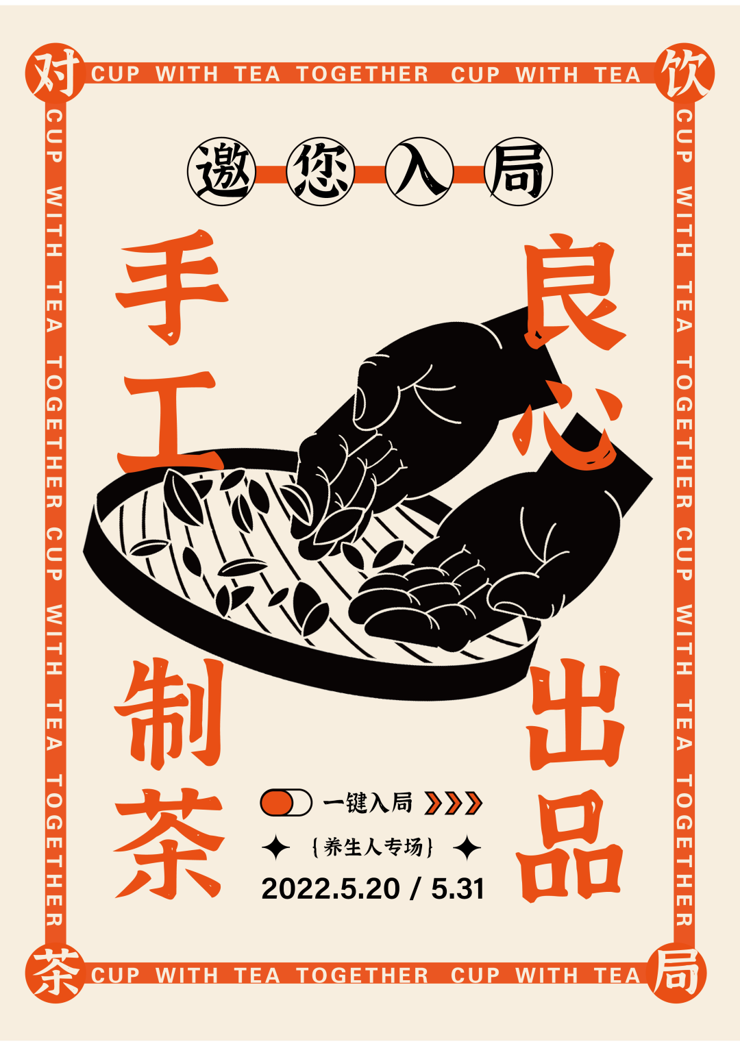 但是经过调研得知,老套、繁复、单一、刻板成了年轻一代的饮茶痛点,仿佛纯茶形象与当代青年人完全不搭边。因此“对饮茶局”将推陈出新,寻求新的组合方式,将中国传统茶文化结合现代美学设计,对中式茶从喝法、茶器茶具、制茶过程等各个环节进行创新设计,旨在打造特色鲜明的品牌形象,提高中式茶在年轻群体消费中的记忆点。除此之外,该作品致力于讲好中国茶故事,从而唤起青年一代对传统茶文化的认知,从“新”出发,爱上茶饮!