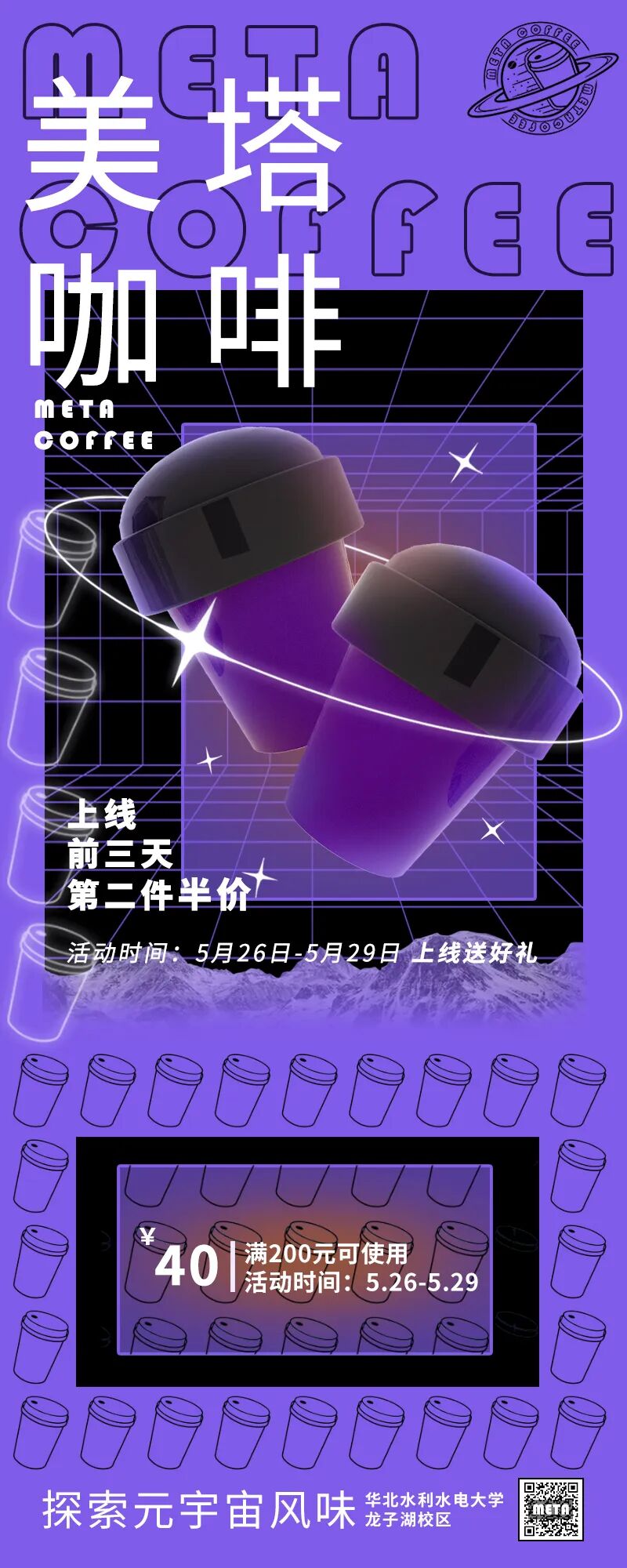 随着元宇宙概念的兴起,人们的交互方式也发生改变同时设计师转换传统的设计思维也很重要。以“探索元宇宙风味”为主题展开美塔咖啡品牌推广设计,围绕这个主题结合品牌形象展开了一系列设计工作。