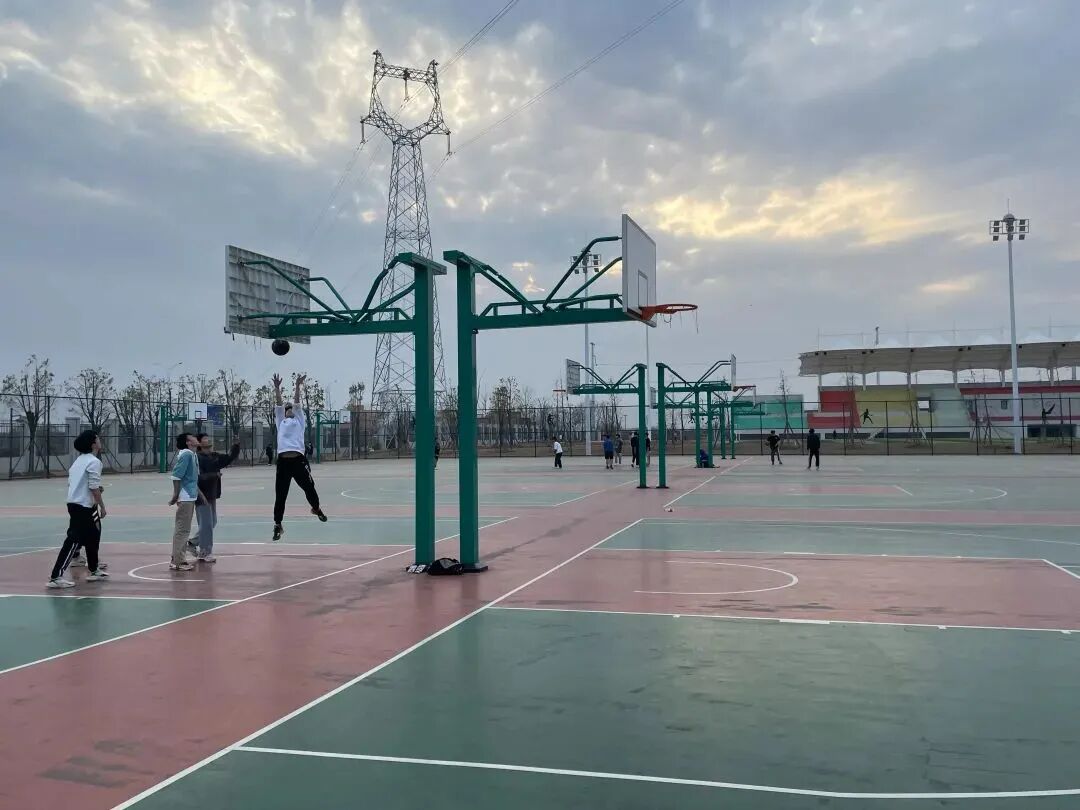 与三两好友去运动场打篮球