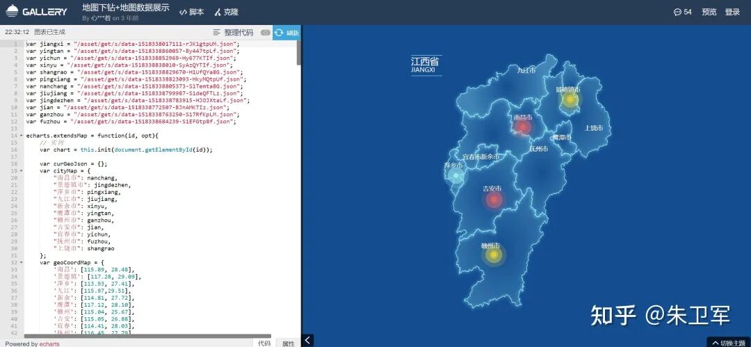 Echarts大部分图表形式都封装到JS中,你只需要更改数据和样式,就可以应用到自己的项目中。