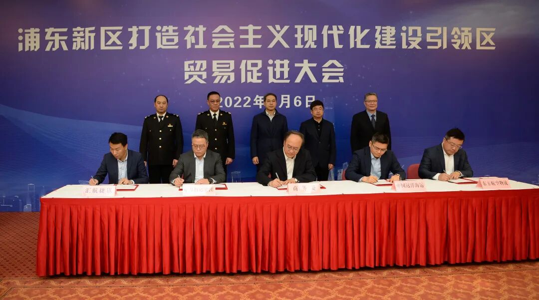 会上,中国远洋海运、中谷海运集团、东方航空物流、汇航捷讯(运去哪)等4家企业代表与区商务委签署“浦东新区国际物流运力保障贸易发展”合作倡议,持续推进浦东贸易和航运高水平发展。据悉,自疫情发生以来,国际航运运力持续紧张,国际物流企业为浦东外贸稳定发展做出了重要贡献。为进一步加强航运物流企业对浦东重点外贸企业服务保障,浦东新区政府支持航运物流企业在《引领区意见》框架下探索创新发展,鼓励航运物流企业探索与浦东新区重点外贸企业建立长期合作关系。