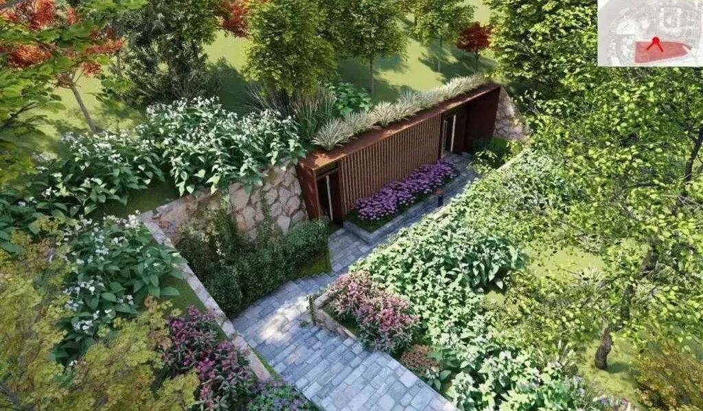 其中,双子山最高峰相对高度为48米,余脉高为 8~37 米不等,走向为东高西低,山体内部设计为人工建造停车库。建成后将成为国内第一座高度超过40米的人工仿自然山林。