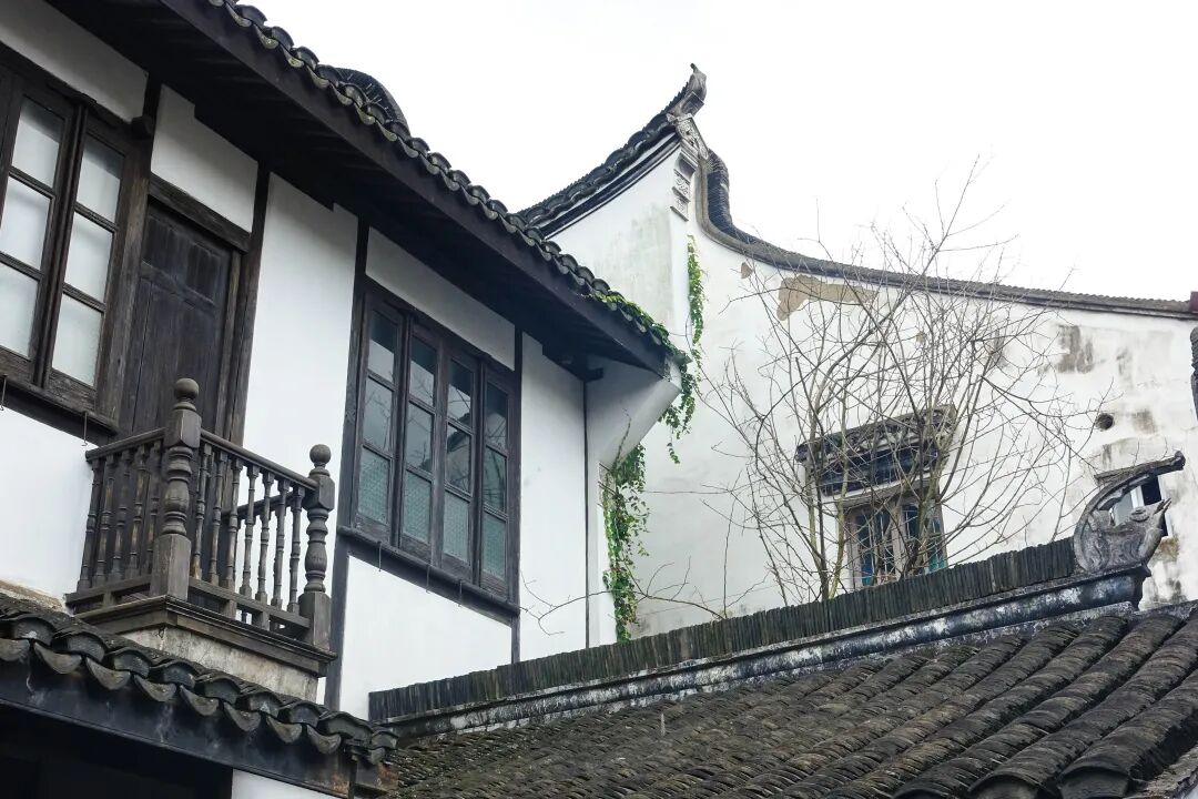 黄宅的建筑造型风格别致,观音兜山墙与坡顶、青瓦屋面与白灰墙面相映成趣。