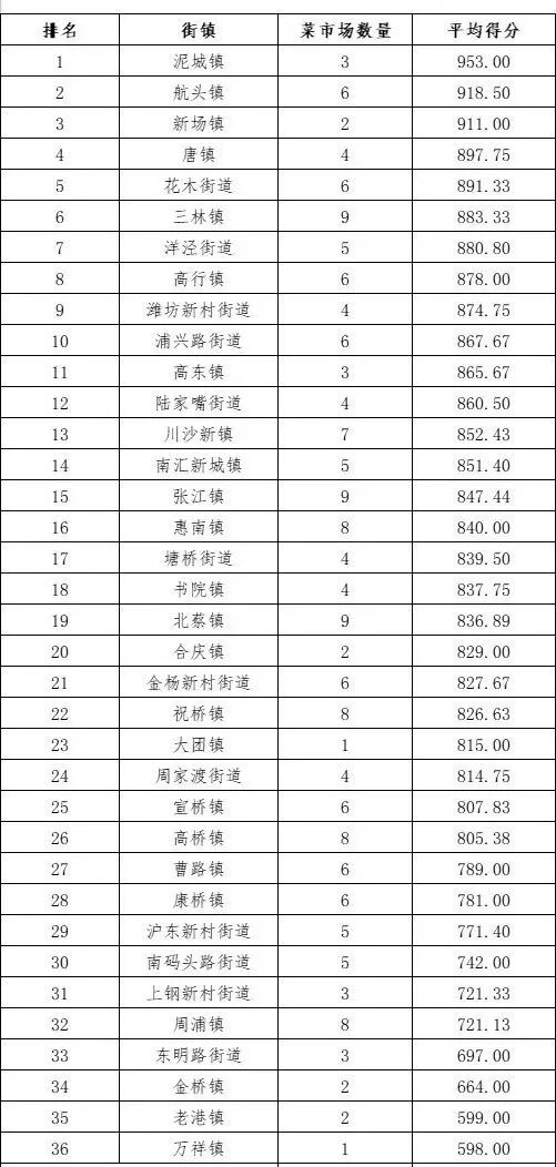 分菜场看,张江-浦商邻里荟益江店、泥城-浦商邻里荟松帆店、金杨-金杨市集测评得分较高;分街镇来看,泥城、航头、新场测评得分较高,分列前三。