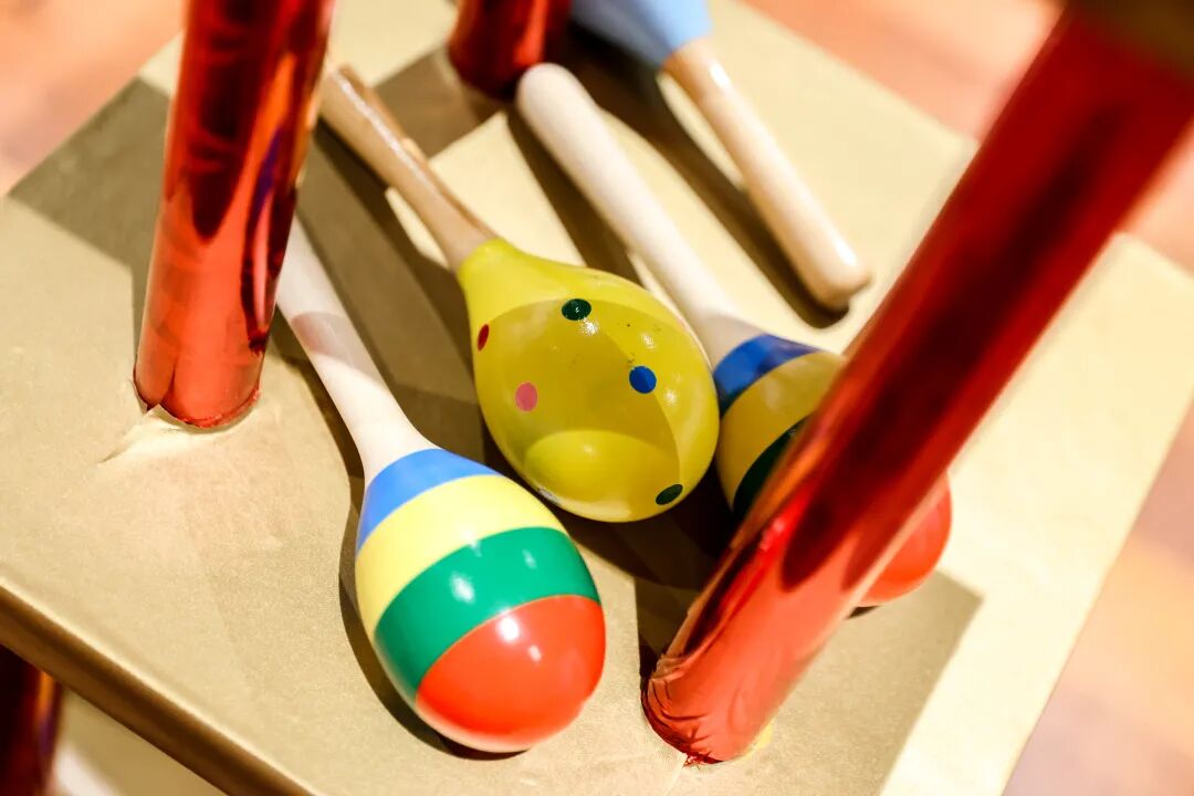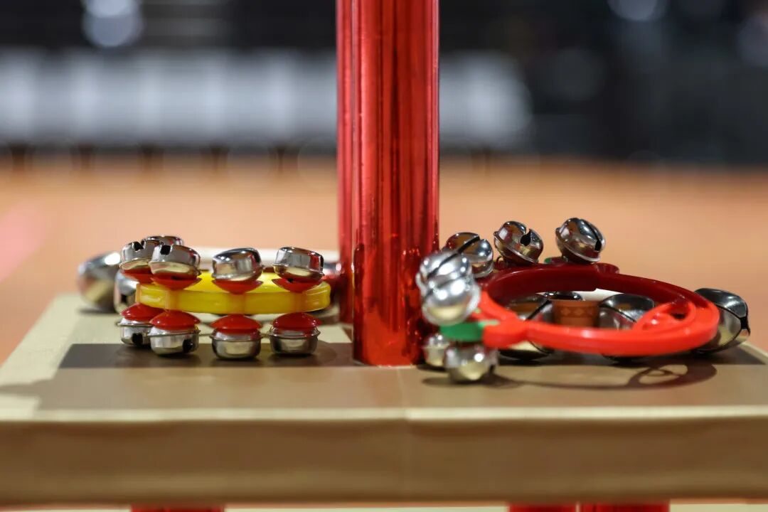 马林巴、钢片琴、小军鼓、小堂鼓、音筒、非洲手鼓、棒棒糖鼓、沙蛋、木盒、牛铃、铃鼓、刮鱼……小朋友们认识哪些乐器呀?
