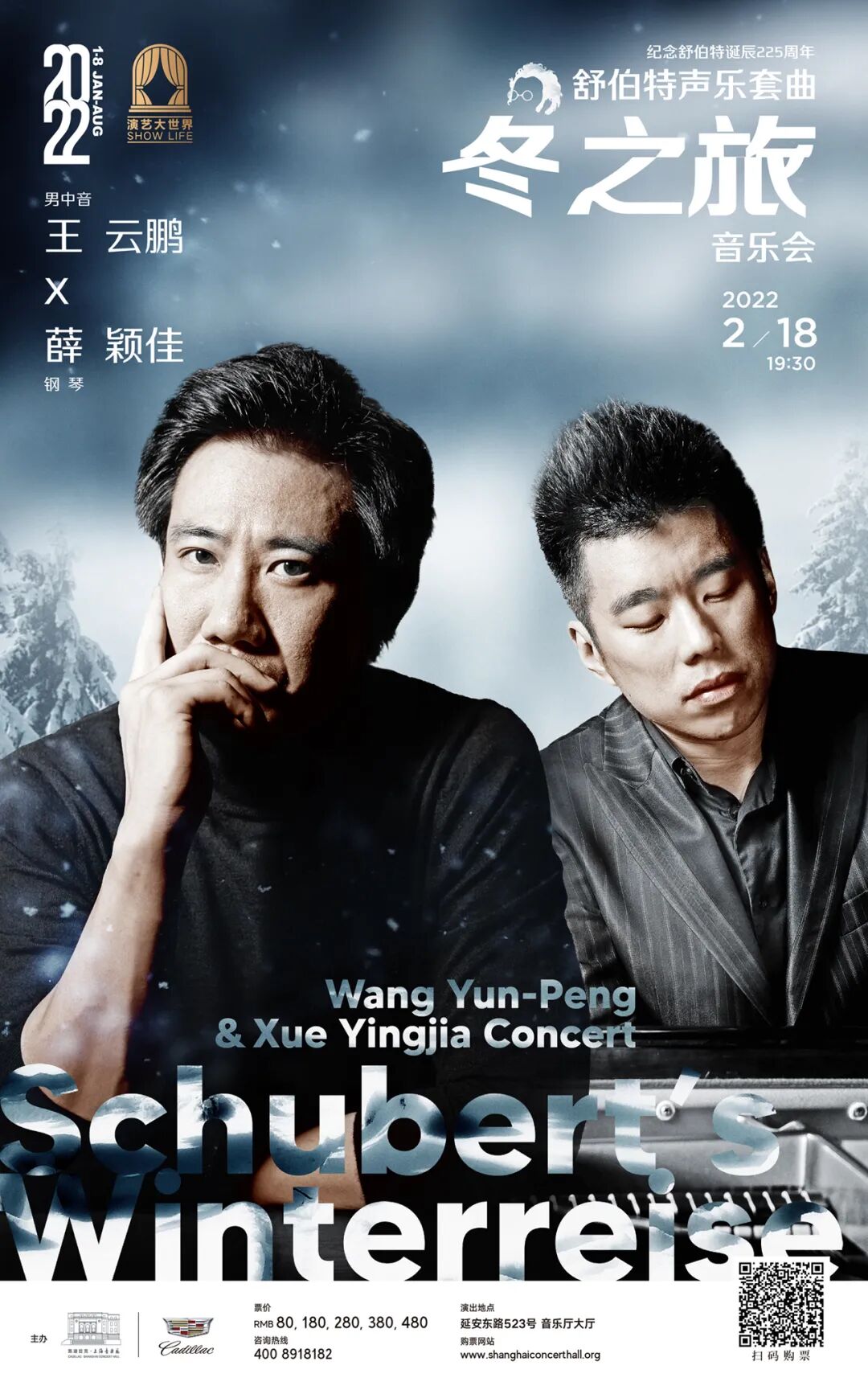 为纪念舒伯特诞辰225周年,2月18日,凯迪拉克·上海音乐厅邀请纽约大都会歌剧院签约艺术家,第二十届多明戈世界声乐大赛首位独斩三项大奖的中国艺术家男中音歌唱家王云鹏,携手钢琴家薛颖佳带来声乐套曲《冬之旅》。