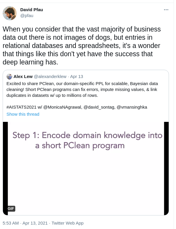 吴恩达说AI模型里百分之八十的工作要放在数据上,而数据清洗又是保证模型质量的关键步骤,它涉及到领域知识等等,往往很难自动化,MIT最近发布了一个自动数据清洗机器人,有望摆脱手工清洗数据!