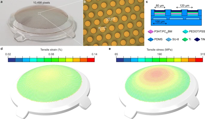 具有10,498个光伏像素的高密度POLYRETINA假体的图片