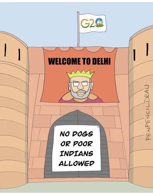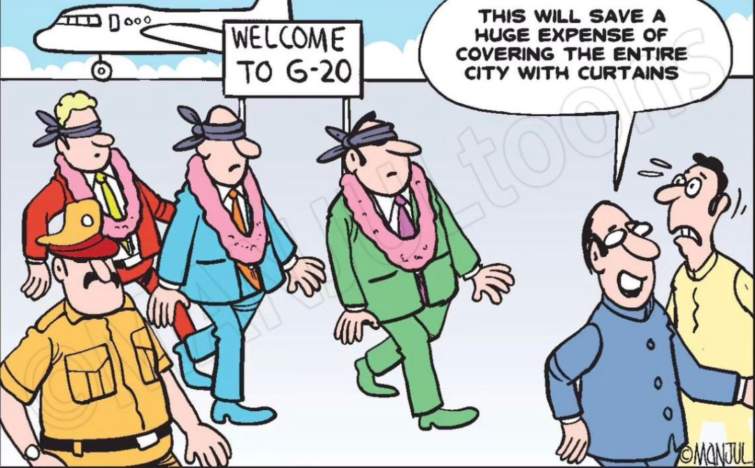 G20峰会期间印度这种怪象,正像有的漫画讽刺的: