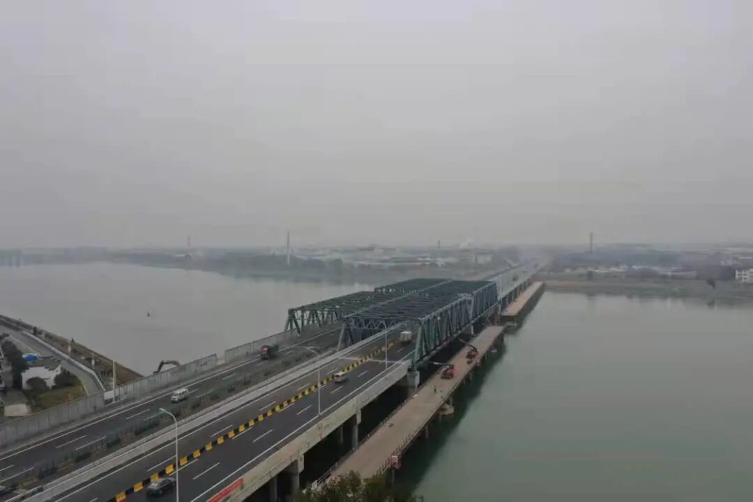 根据施工图设计,此次改扩建需在既有桥梁两侧拼宽6.75米宽桥梁,拆除老桥12跨梁板,并在通航段新建2跨80米的组合钢桁架的形式,以满足衢江航道安全通航要求。