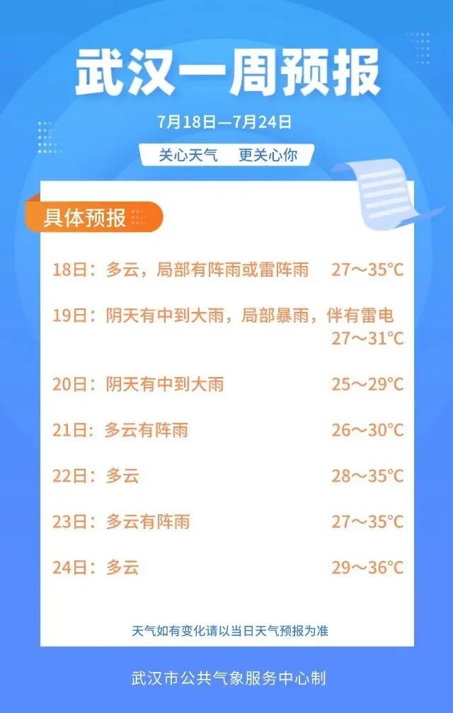 武汉市一周天气预报