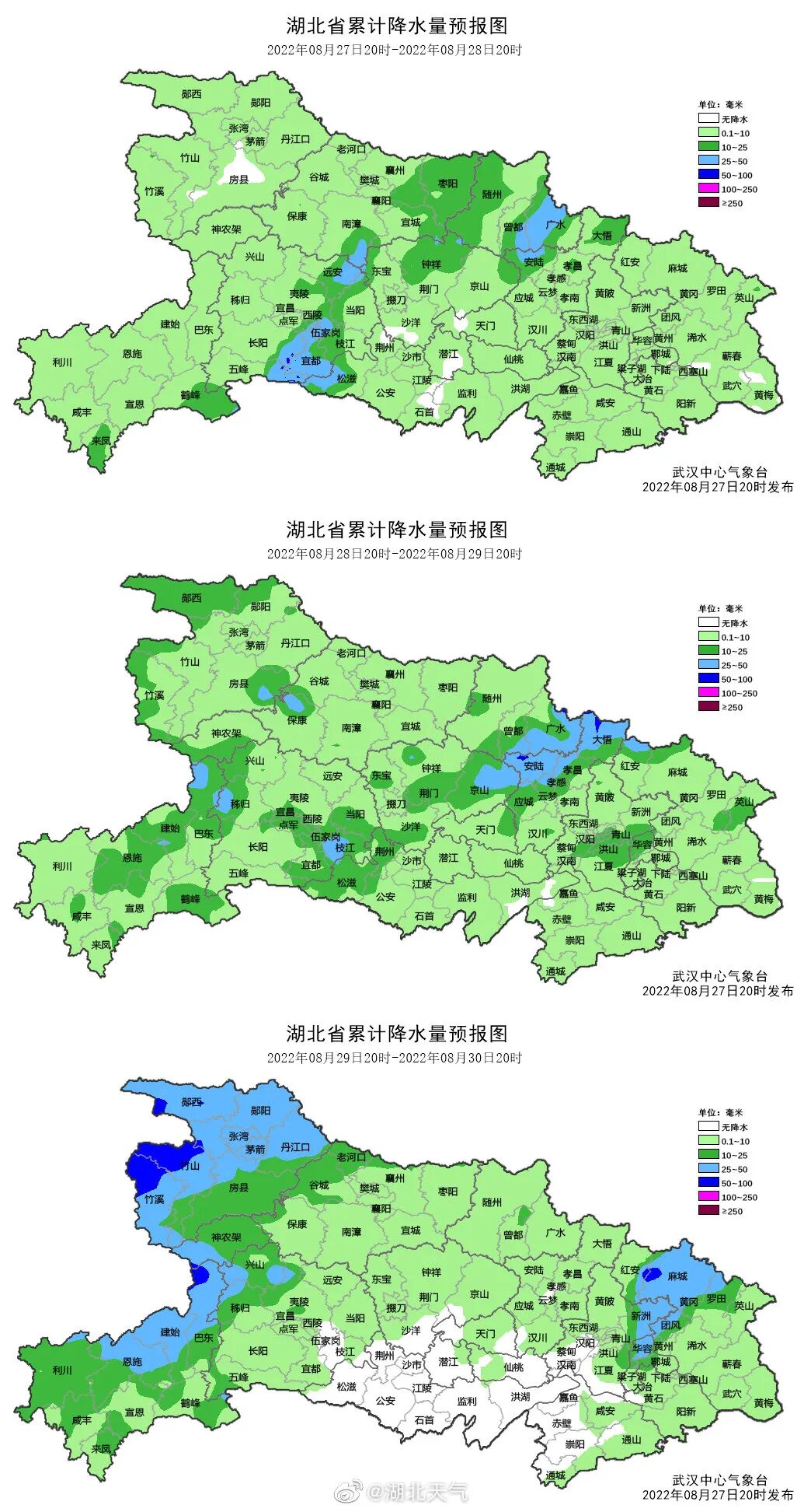 最高气温:鄂西北24~27℃;其他地区33~36℃