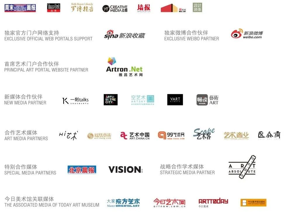独家官方网络支持、首席艺术门户合作关系、新媒体合作伙伴、特别合作媒体等。