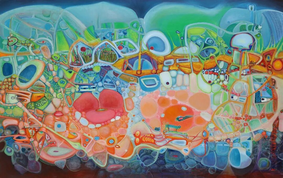 由此,我们看他的绘画作品,就有了别样的视觉体验,而非标准化的视觉形式,这种视幻觉打破了常规,它不由直接视觉产生,而是来自画家内心的瞬间,既有他想表达的情感、情绪、情态,也有他忽然产生的幻想,化作交错、奇异的形态。这些形象看似游离、恍惚,但投射出他本真中幻化出的炽爱和人性,仿佛这是一连串的事件,由他的幻觉而重生,这是他这一代人所不曾想象的经历和心灵冲击。虽然历经磨难,但依然坚韧,如春天般重生。
