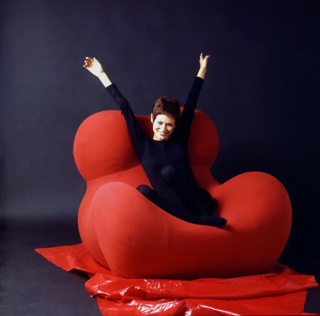 模特坐在加埃塔诺·佩谢的《UP5_6 扶手椅》上