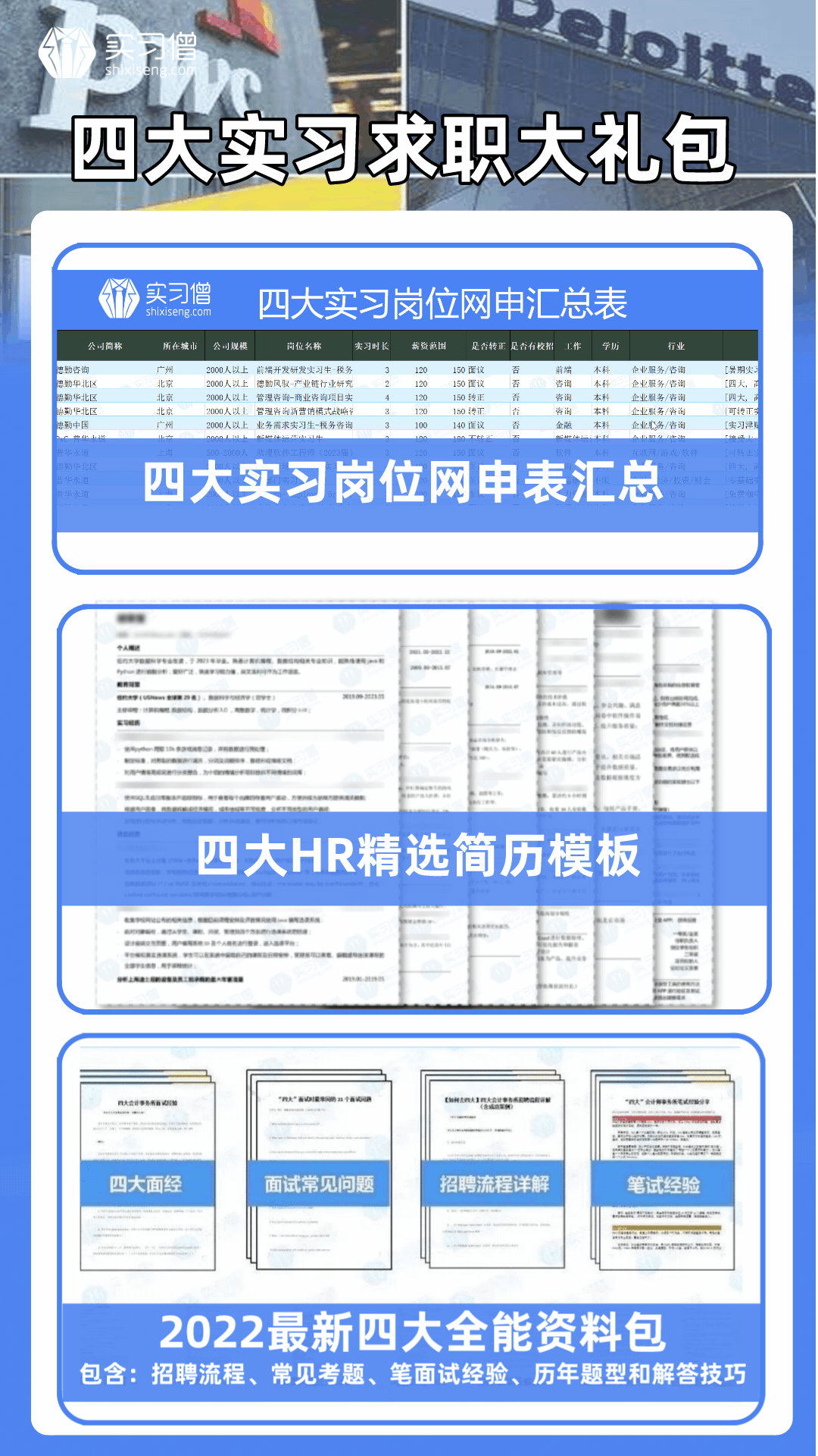 为了更加全面的解决大家的求职问题,快人一步收获四大的offer,我们特意为大家准备好了——