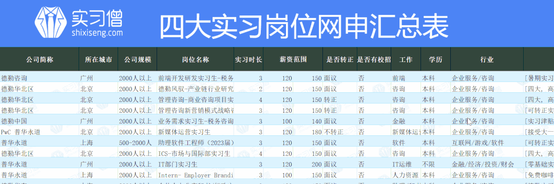 这种种迹象都在表明现在就是进入四大的好机会!我们特意为大家筛选了四大近期在招实习和秋招岗位,赶紧投递起来吧!