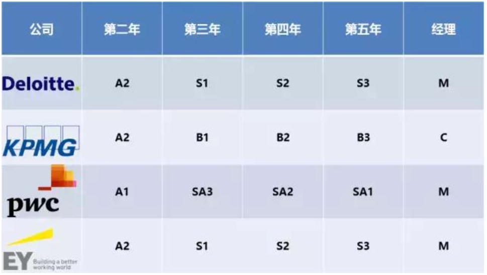 众所周知,四大一年一晋升,每年工资都有涨幅,并且晋升机制公平透明,从A1到Manager,能收获高于其他企业数倍的成长速度。