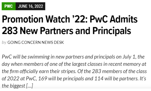 前段时间,GC网站公布了普华永道美国地区2022年晋升283人的消息,这一次是普华永道近年来晋升人数最多的一年!