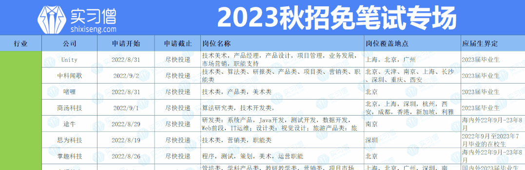 因为领略过了笔试的残酷,学姐连夜去全网搜罗,终于给同学们带来了那些在这次秋招当中免除笔试环节的神仙企业!快来和学姐一起看看吧: