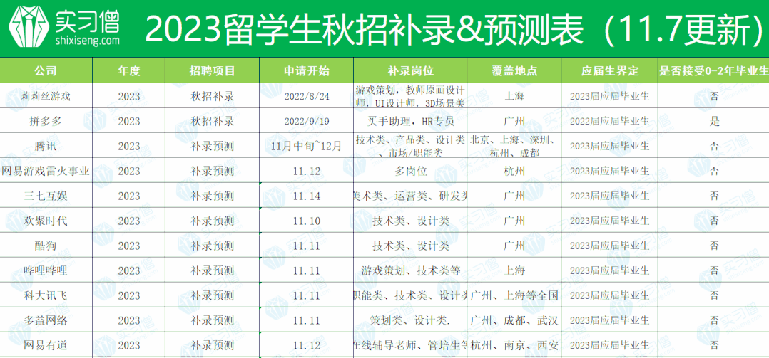 学姐搜索各大企业官方信息,整理出2023秋招已有补招信息和预测信息,内容随时更新!
