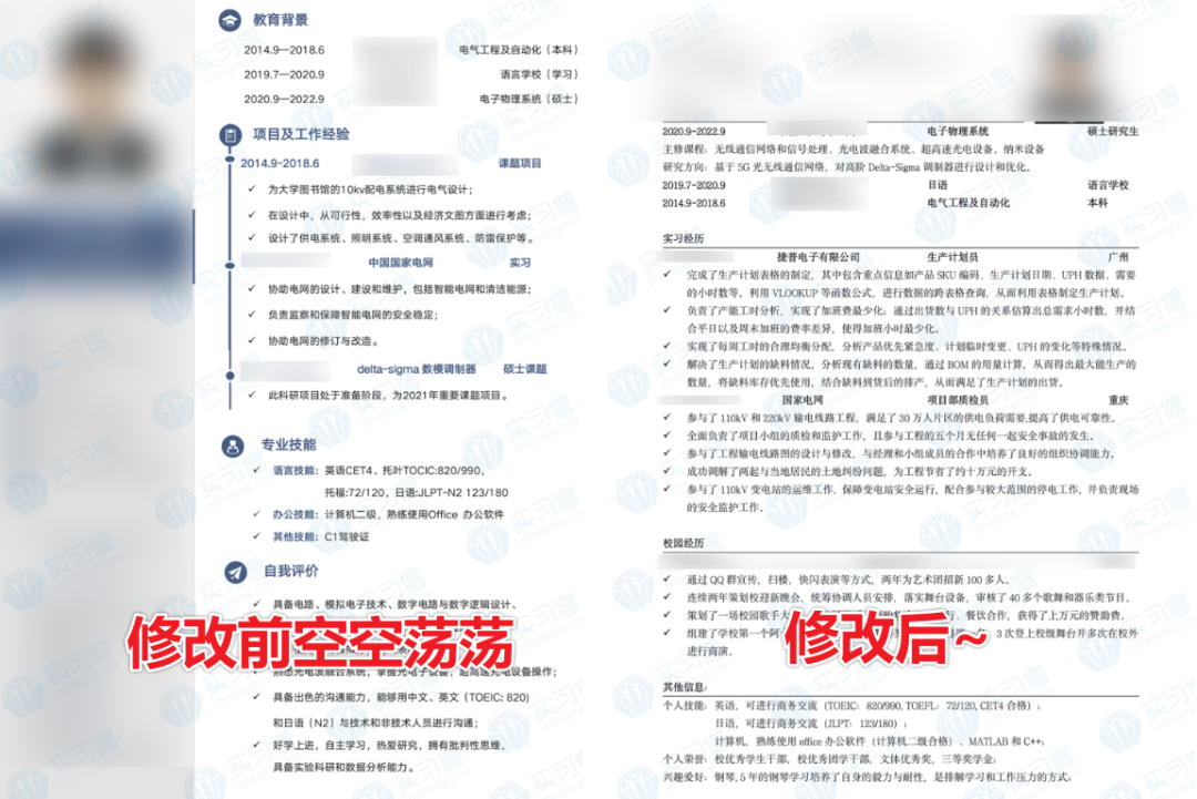 所以学姐真心建议大家多花点时间制作简历,找实习,毕竟有学历,没有经历的简历,就像一盘散沙,都不用HR吹,走几步路就散了。