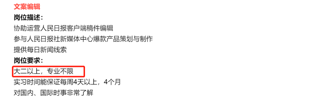 *人民日报招聘岗位一览,图源:招聘公众号