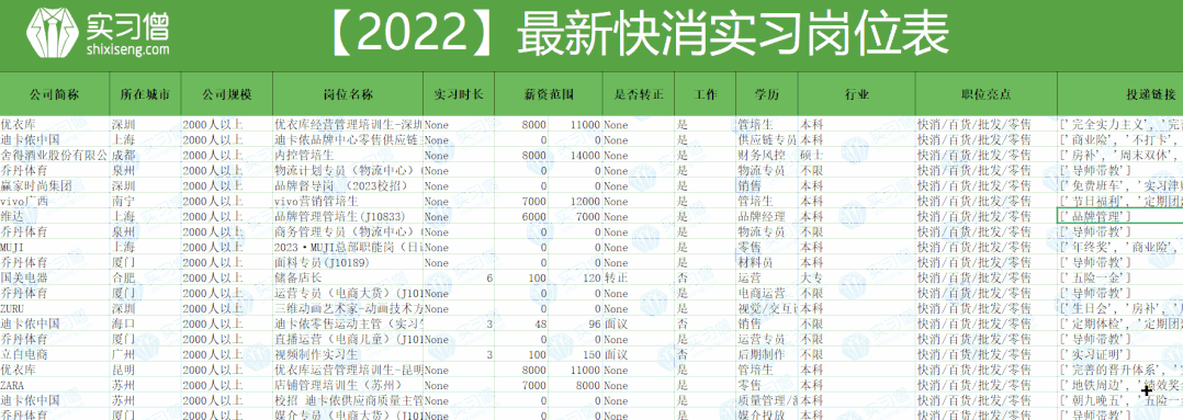 *戳学姐领取500+快消岗位表