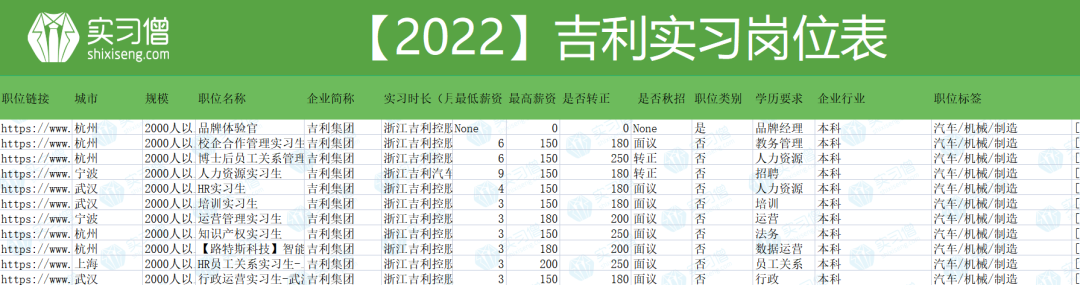 赶紧来吉利实习!