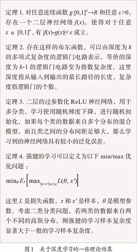 深度学习也有缺点,缺乏强健性(robustness)是一个广为人知的问题。也就是说数据中很小的扰动就会导致预测错误。这应该是深度学习强大的学习能力所致。强健的学习可以定义为min/max的优化问题。一般的机器学习目标是在平均情况下预测误差最小,而强健的学习目标是在最坏情况下预测误差最小,具体来讲,数据在某个范围内发生对自己最不利的扰动时也能保证平均预测误差最小。最近的理论研究证明[4],在一些特殊情况下,强健的学习比一般的学习需要更多的样本(定理4),结论对深度学习和传统机器学习都适用。这对深度学习来说不是一个好消息,意味着它需要更多的样本才能变得强健。