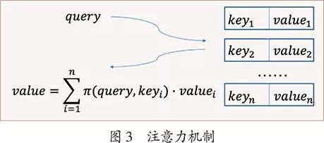 注意力机制实际上是一种软的联想记忆机制,是键-值(key-value)数据库的一种推广。在传统的键-值数据库中,查询、键、值都是符号。给定查询(query),找到完全匹配的键,返回相应的值。注意力机制中,查询、键、值都是实数向量。给定查询,计算查询和所有键的匹配度,以归一化匹配度为权重计算加权平均值,并返回加权平均向量,如图3所示。