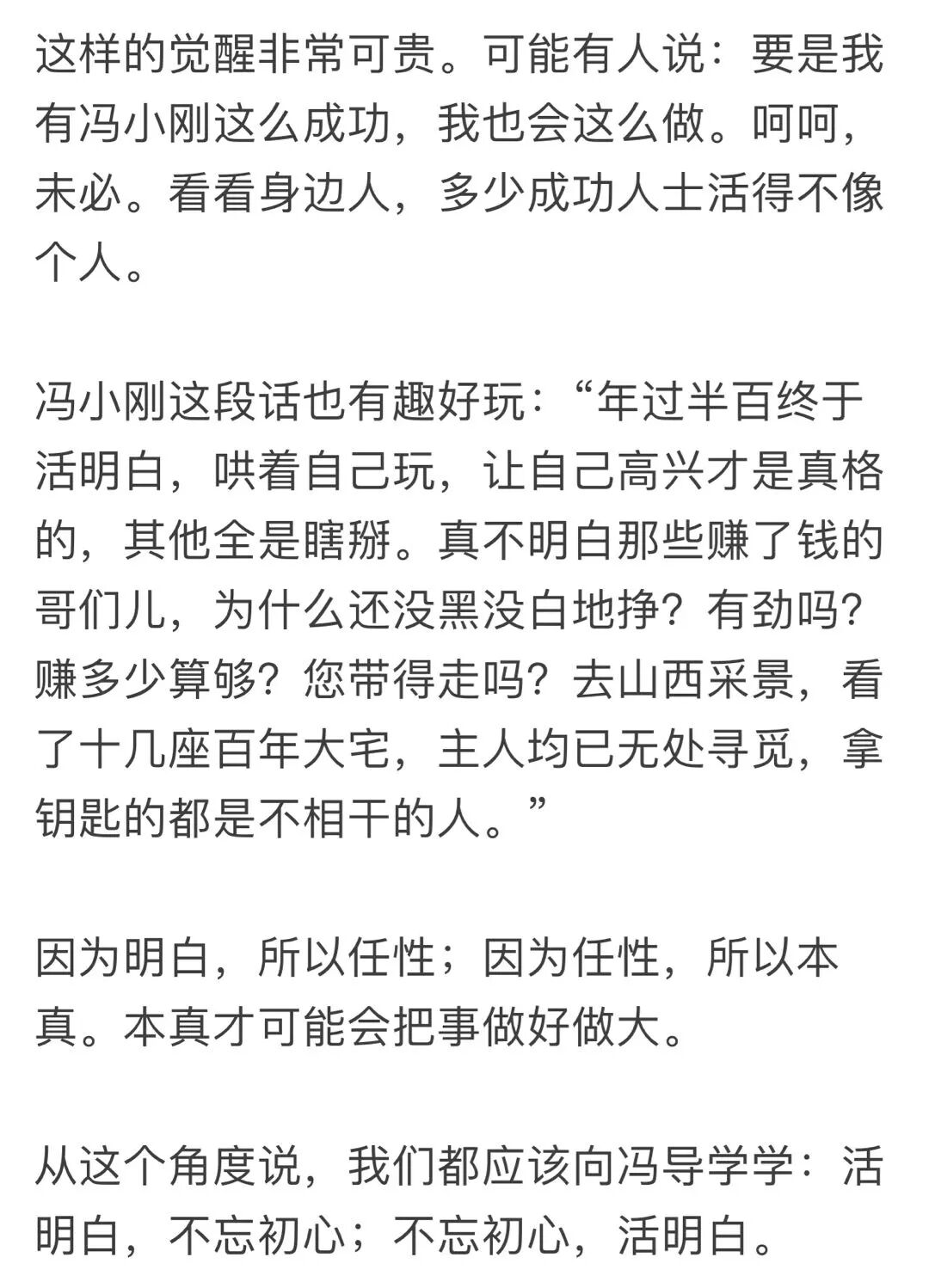 人贵在清醒,知道自己最终要的是什么,所谓“不忘初心”。冯小刚的初心是什么呢?肯定是严肃电影。