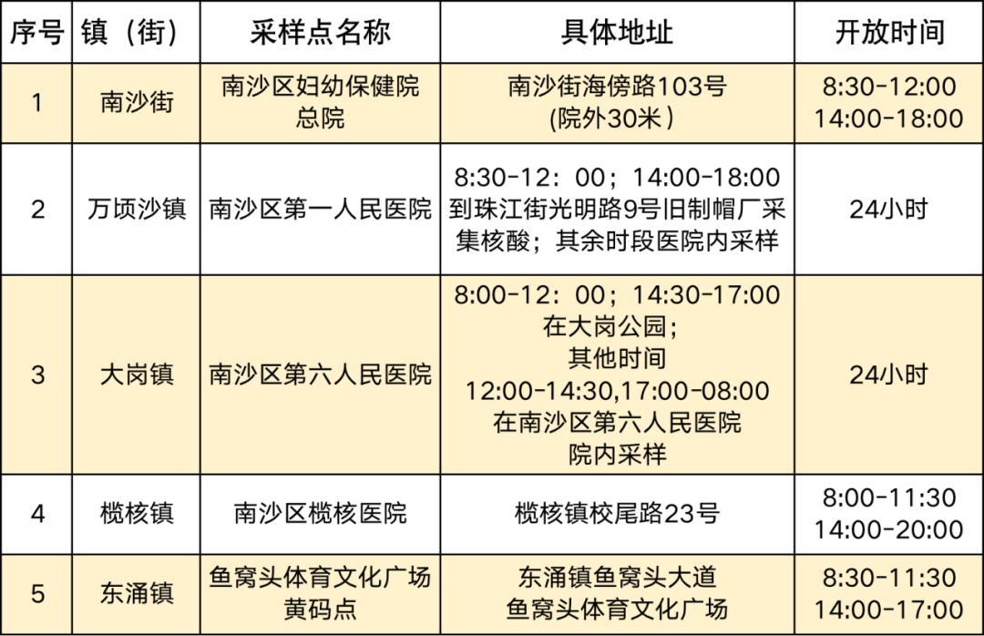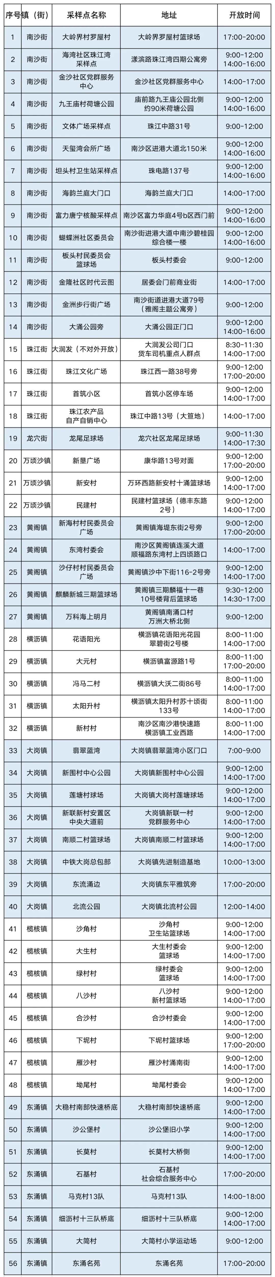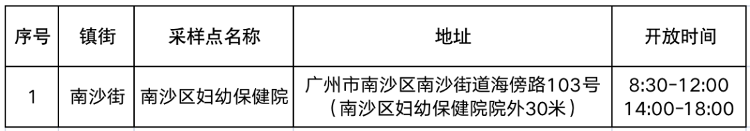 12月7日,广州市南沙区卫生健康局发布《南沙区便民核酸采样点安排表(12月7日)》: