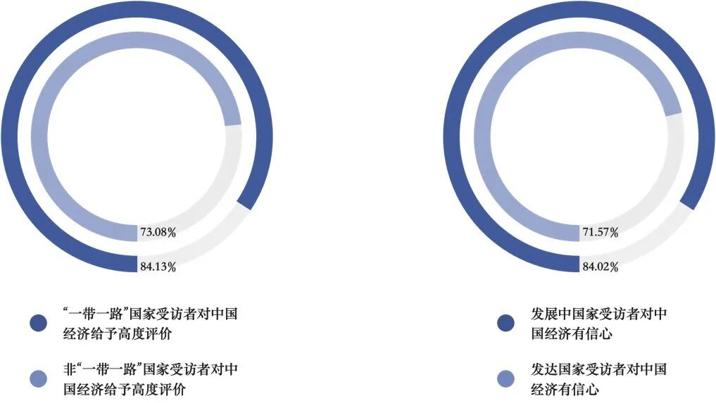 这项名为“新时代的中国”的全球民意调查,由中央广播电视总台CGTN智库联合中国人民大学国家治理与舆论生态研究院共同发起。调查对象既包括美国、英国、法国、德国、加拿大、澳大利亚、新西兰、日本、韩国、新加坡等发达国家的居民,也包括巴西、阿根廷、墨西哥、泰国、印度、巴基斯坦、阿拉伯联合酋长国、埃及、尼日利亚、肯尼亚、南非等发展中国家的受访者。结果显示,对中国经济成就高度赞赏的受访者比例,在非洲高达91.46%。欧洲紧随其后,占比达到81.60%。北美洲位列第三,达到78.09%。About 78.34 percent of respondents from 22 countries believe the Chinese economy has injected vitality into the global economy over the past decade and has become the engine of the world economy, according to a joint survey conducted by CGTN and Renmin University of China. The survey has interviewed respondents who are 38.64 years old on average from developed countries such as the U.S., the UK, France, Germany, Canada, Australia, New Zealand, Japan, South Korea, Singapore, as well as developing countries like Brazil, Argentina, Mexico, Thailand, India, Pakistan, United Arab Emirates, Egypt, Nigeria, Kenya and South Africa. Over half respondents have higher education, with 54.71 percent having a bachelor's degree or above, of which 15.22 percent are masters and doctors. The survey showed that 91.46 percent of respondents from Africa spoke highly of China's economic achievements. Europe followed closely with a share of 81.60 percent, while North America ranked third with 78.09 percent. 各大洲受访者对“中国经济已经成为世界经济的引擎”的认同度“一带一路”沿线国家占全世界人口超过六成,占全球经济总量约30%。此次调查显示,“一带一路”沿线国家对中国经济给予高度评价的比例达到84.13%,显著高于非“一带一路”国家。与发达国家相比,发展中国家的受访者在调查中表现出对中国经济更强的信心,占比达到84.02%。It also showed that 84.13 percent of respondents from countries along the Belt and Road Initiative (BRI) spoke highly of China's economic achievements, more than those from countries out of the BRI. Meanwhile, 84.02 percent of respondents from developing countries have confidence in the Chinese economy, more than those from developed countries.