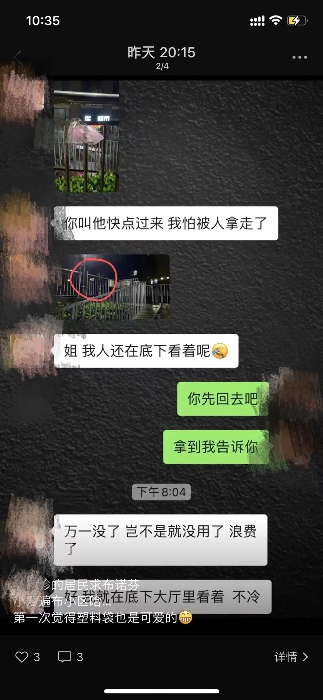 “我网购的试剂盒刚刚送到家里,可以免费分享,我挂在门把手上,你过来取吧。”住在同楼的李先生看到消息后,第一时间在群里回复,随后两位居民通过及时消杀加无接触的方式完成了试剂盒自取。