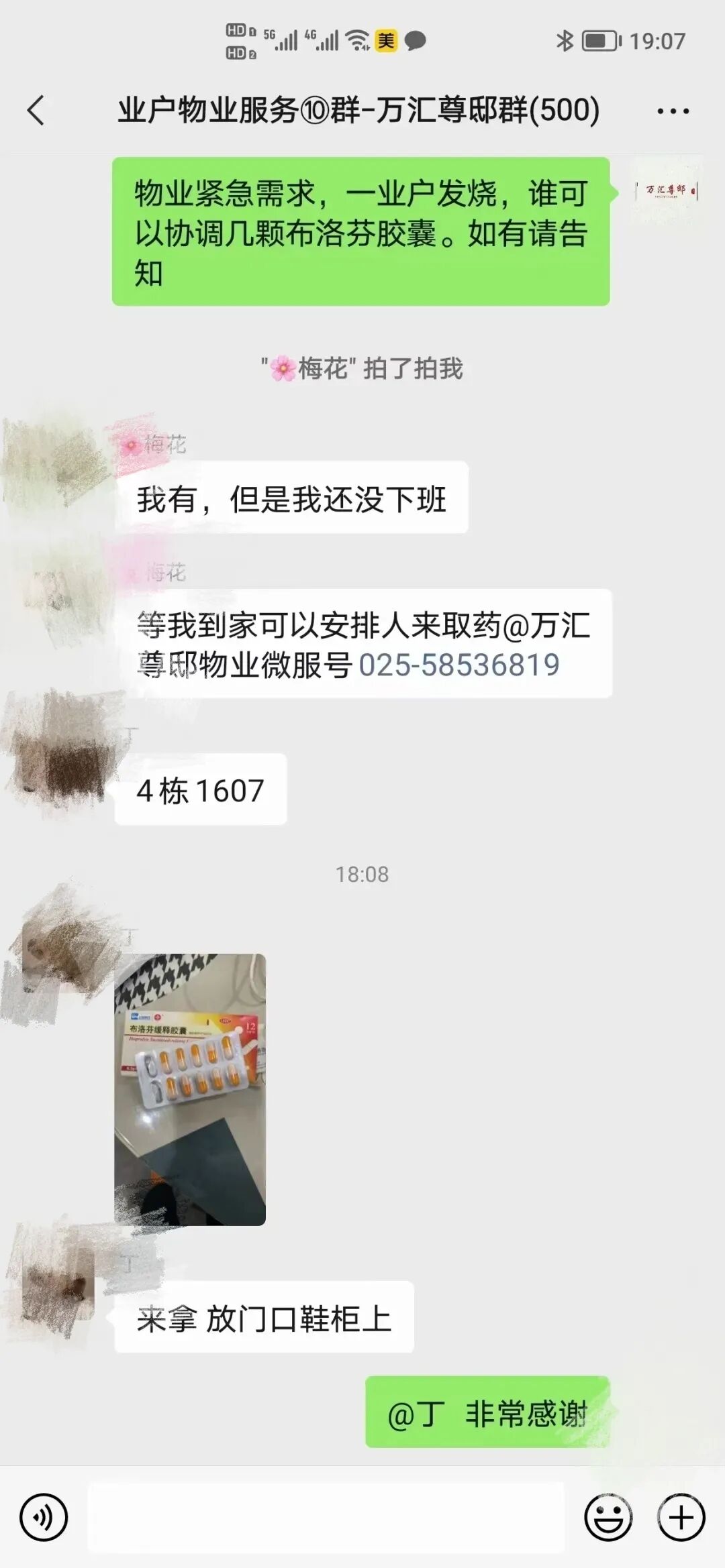 “有余药,可分享。”该物业相关负责人表示,在疫情防控特殊时期,物业充分利用微信群等平台联动发布需求、协助解决难题,一切协助仅限紧急需求,充分调动园区的资源,完全为无偿的。