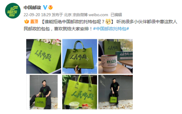 其实平时我们说到中国邮政,想到的都是快递业务以及精致多样的邮票设计。而近几年来,从邮政咖啡店,到盲盒和玩具模型,再到现在火了一把的托特包,中国邮政已经不仅仅是那个只提供邮递服务的企业,而是跨界到更多的领域发展。