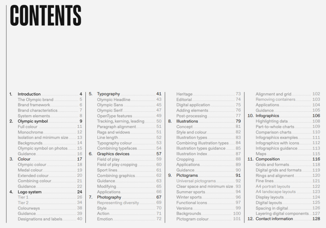 国际艺术家、印刷师和设计师团队创建的新设计系统具有三种定制字体:Olympic headine字体品牌标志性的粗体和运动字体,用于短而有力的标题,Olympic Sans主要是用于正文,而Olympic Serif使整体带来一些传统和优雅。