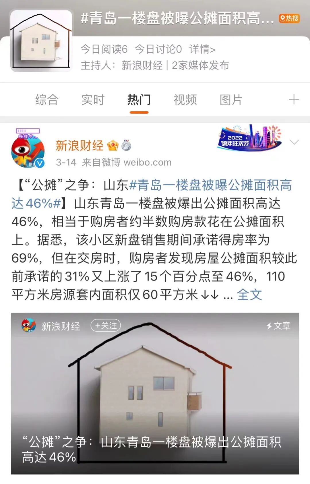 青岛一业主收房时发现,自己买的110㎡的房子,到手实际使用面积仅61㎡,这一事件冲上了热搜,再度引发人们对于公摊面积的讨论。与此同时,知名经济学家任泽平也发文呼吁:该取消公摊面积了,不能让老百姓买房像开盲盒。