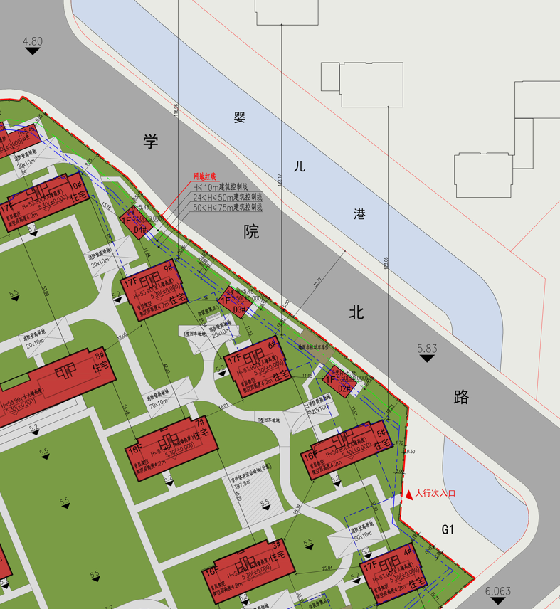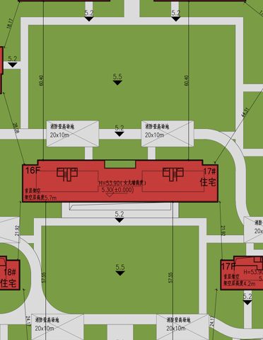 小区共规划25幢14~17层的高层可售住宅,底层均不设住宅,其中1号楼,2号楼,16号楼,19~21号楼底层为配建,其余底层为架空层。