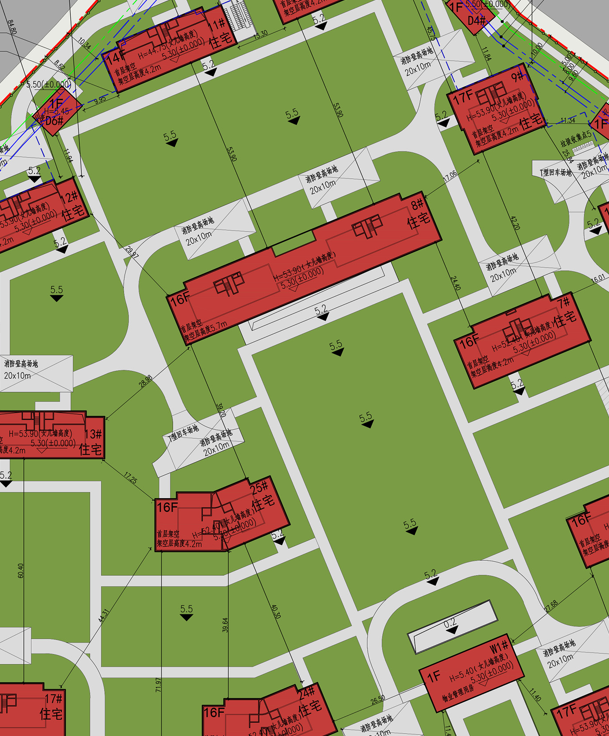 从规划图看,绿城申花项目地上建筑面积175948.5㎡,容积率2.1,建筑密度22%。