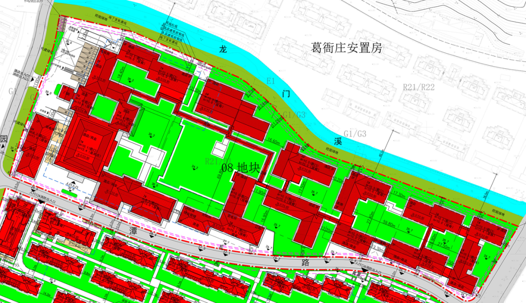 住宅部分集中在龙坞单元XH1602-R21/B1-10子地块,与商业部分仅隔龙潭路。按照规划要求,住宅部分建筑不得设置别墅类建筑,层数不应低于四层。