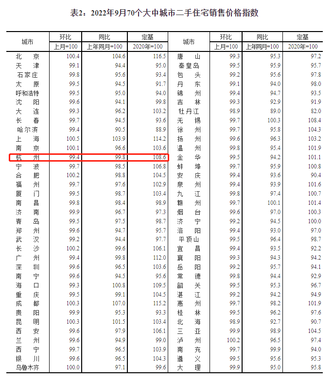 国家统计局:9月杭州二手房价格环比三连跌