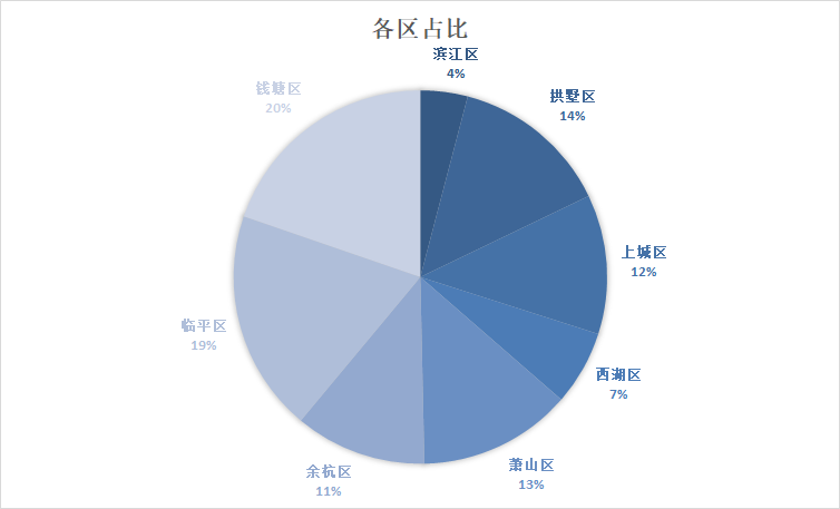 上周,钱塘区的二手房成交量最大,占了总量的20%。其中保利东湾和世茂江滨花园为成交量前十的小区,分别成交了4套,均价分别为24372元/㎡和26090元/㎡。