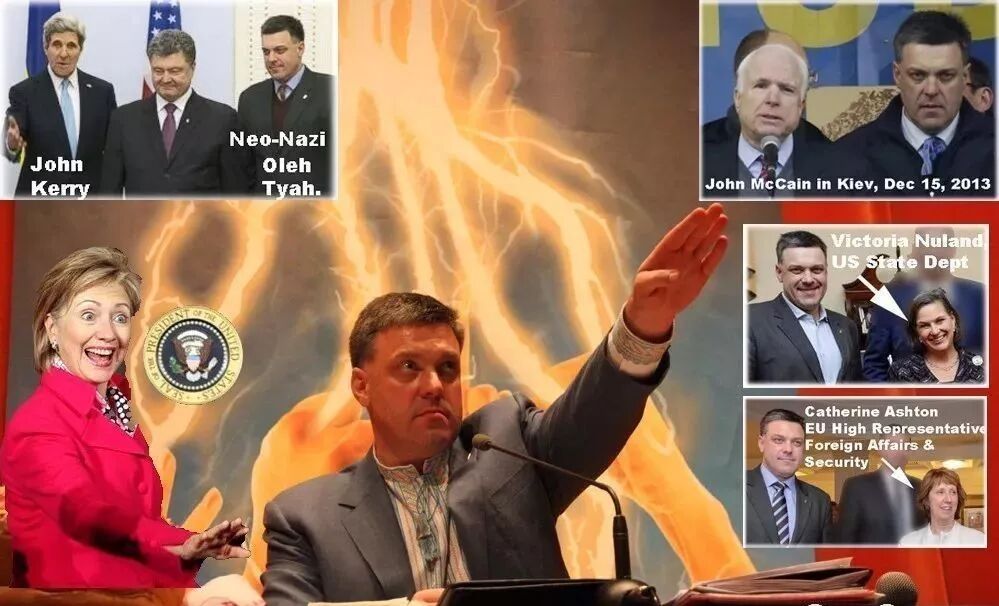 乌克兰新纳粹党受到西方政要接见,乌克兰王牌军将纳粹标志贴在军装之上。