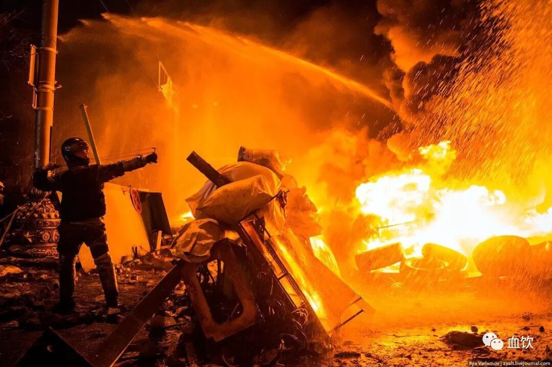 2014年2月18日爆发最严重的2.18基辅暴力冲突,当时基辅市中心到处是燃烧的轮胎、毁弃的汽车残骸、警察和示威者构筑的临时路障,甚至沾满鲜血的尸体。抗议者向警方投掷石块和汽油弹,警方则回之以催泪弹、水炮及镇暴闪光手榴弹。在随后几天里,美国雇佣的第三方枪手同时向示威者及警方开枪,令本已紧绷的紧张态势进一步恶化,警方和示威者都被点燃了。根据乌克兰卫生部事后统计,为期93天的示威运动共造成123人死亡,两千多人受伤。死伤者中不仅有年轻的示威者,也有同样年轻的警察和内务部队士兵。