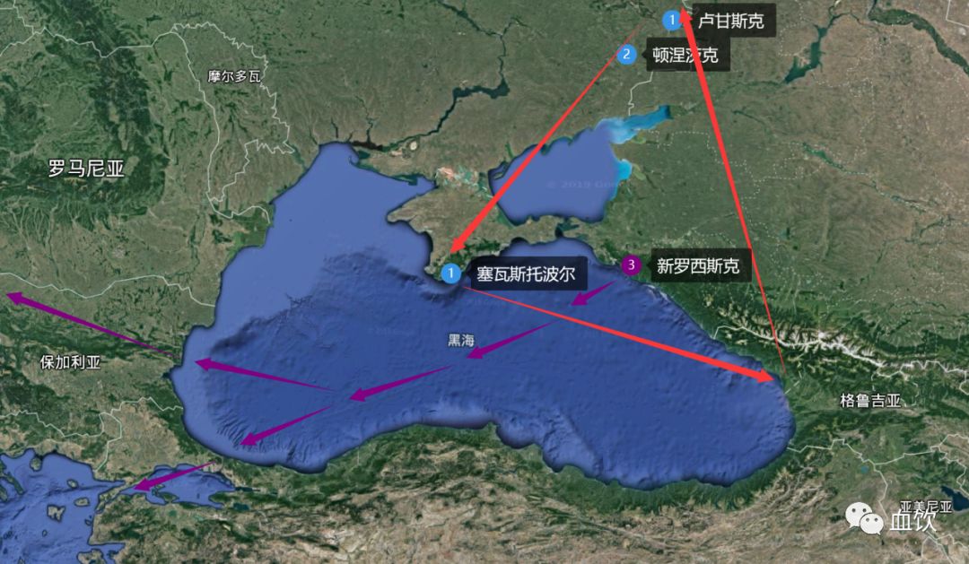 俄罗斯控制红色箭头区域就能够保住南线石油出口港新罗西斯克的绝对安全