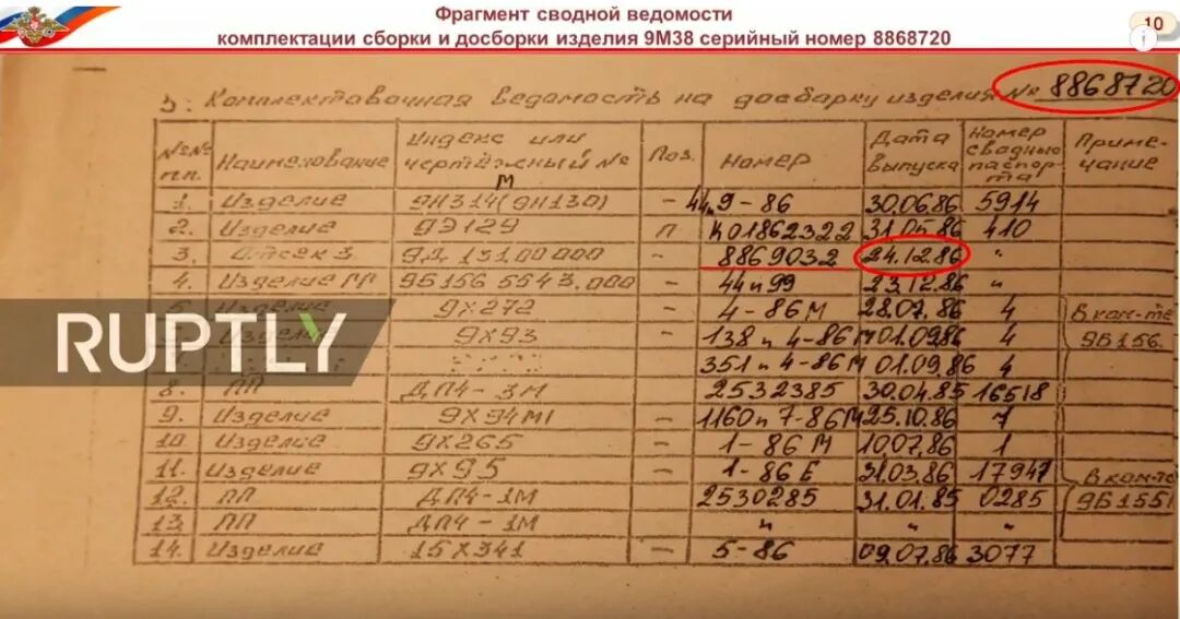 顺藤摸瓜,俄罗斯国防部获得组装导弹的序列号886847379,该导弹于1986年12月29日通过铁路运送到前苏联20152武装部队,接收导弹的军事部队20152是位于乌克兰西部捷列波夫里亚的221防空导弹旅。前苏联解体后,根据乌克兰总统的法令,221防空导弹旅更名为223防空导弹团。现在,223防空导弹团位于乌克兰西部利沃夫地区的斯特瑞市,该防空团确实拥有“山毛榉”9M38导弹系统,并参与了乌克兰东部的冲突。
