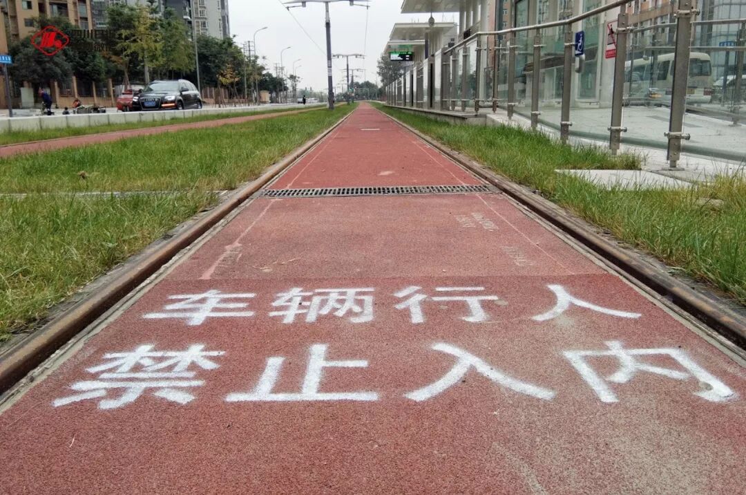 “这些是有轨电车新建设的交安设施。”成都地铁运营公司运营三分公司安全分部副部长张伟介绍:“近期与有轨电车调试同步施划的。”他称:“用于告示驾驶人禁止在标线的交叉路口或其他出入口临时停车,是一种防止交通堵塞的道路标线。”
